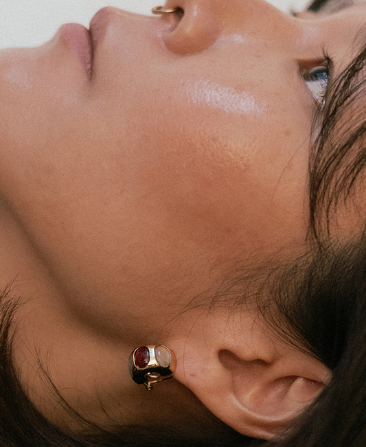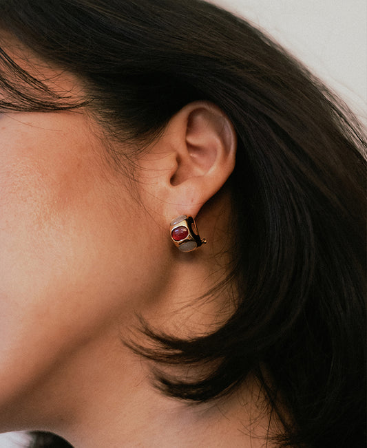 Two-Tone Huggies - Blue Chalcedony and Carnelian