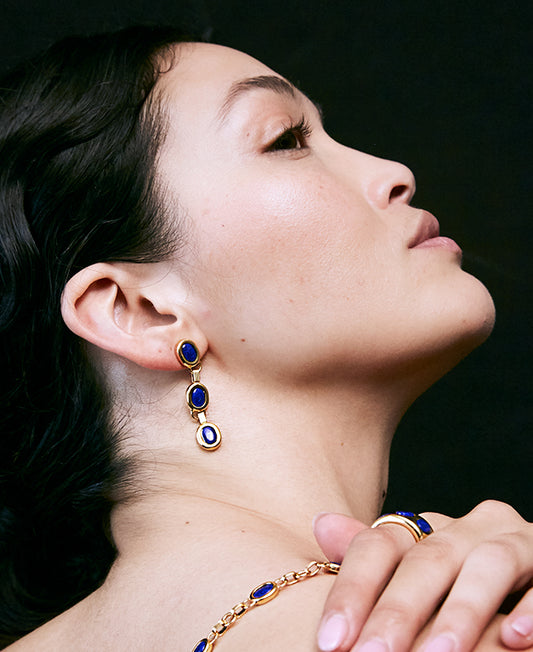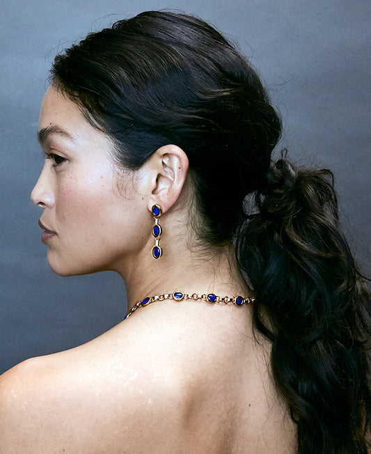 The rich hues of Lapis Lazuli contrast beautifully with the warm glow of gold vermeil, creating a look that’s both elegant and eye-catching. Perfect for adding a refined touch to any outfit, these earrings effortlessly transition from day to night, offering a timeless blend of sophistication and bold style. Pair with the Stations Necklace for a total Lapis Lazuli look.