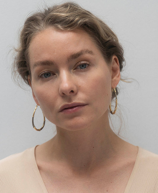 The graphic enamel accents add a special touch to this classic shape that will easily pair with anything you wear. We recommend pairing this style with our Triple Band Eternity Ring with Striped Enamel Details and our Bracelet with Striped Enamel Details.