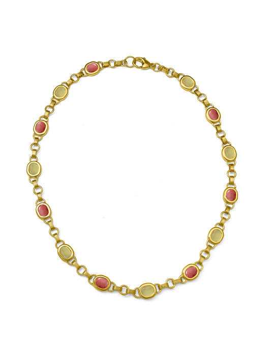 Two-Tone Station Necklace - Aventurine and Rhodonite