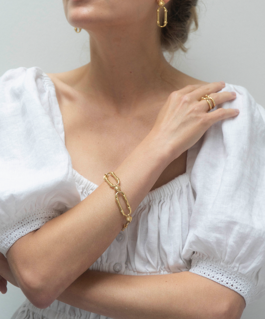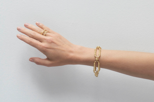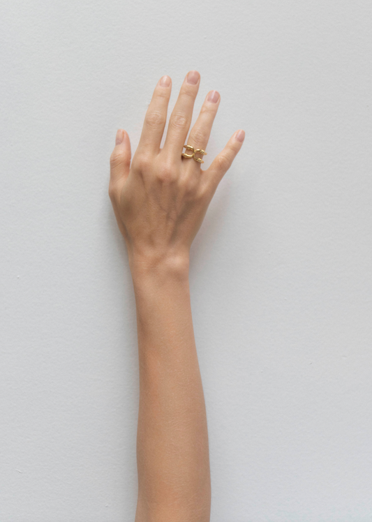 What we love about this ring is the duality of its appearance. Both the fact that it is kind of two rings in one and that its bold and delicate at the same time. The Links Bracelet is a perfect complement to this ring.