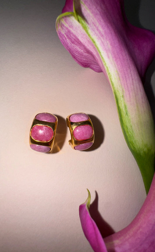 These earrings will quickly become your every day staple, their elegant design making them the perfect accessory for every outfit. We love a matching set and because of this we recommend pairing them with the Wide Aventurine and Rhodonite Ring to achieve a bolder look.